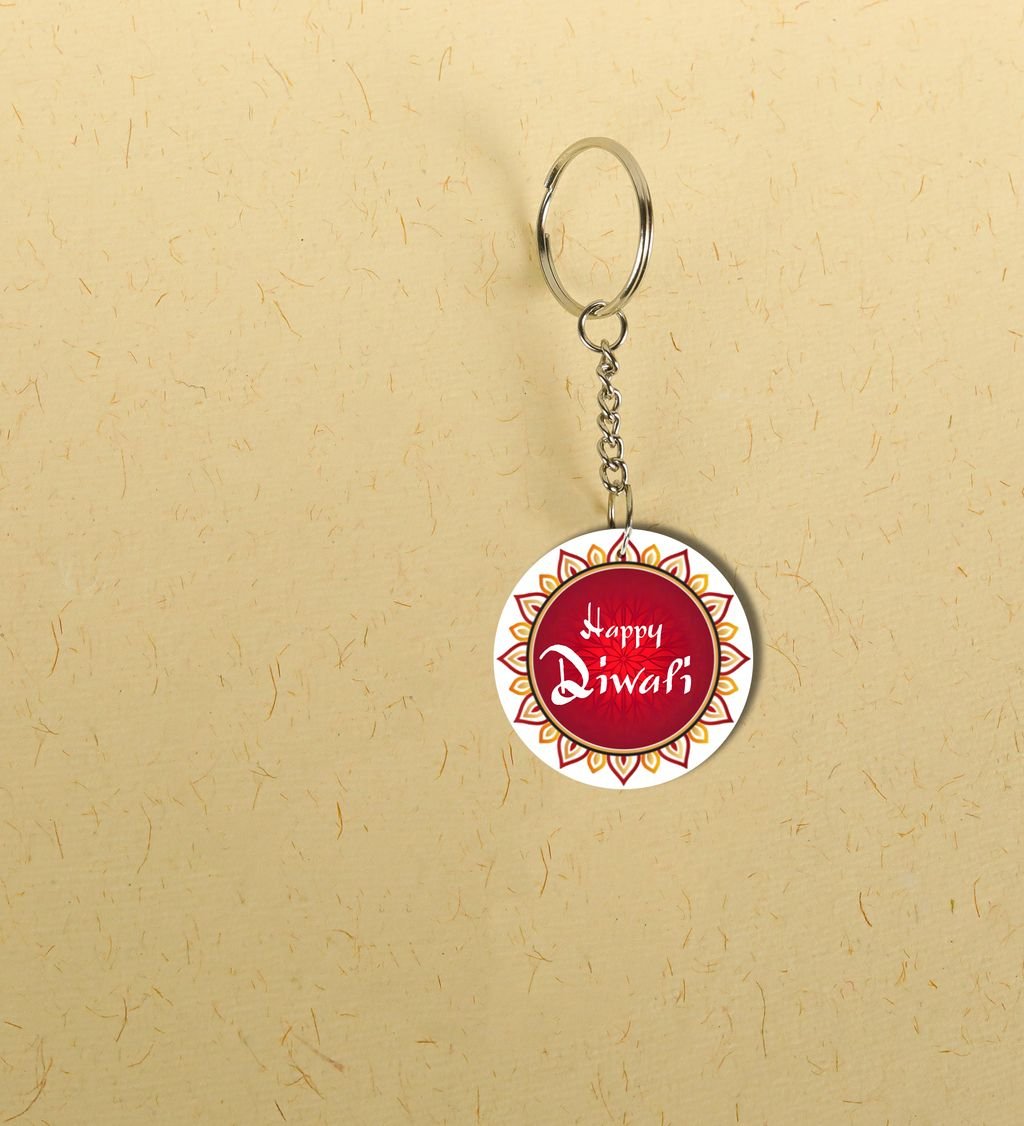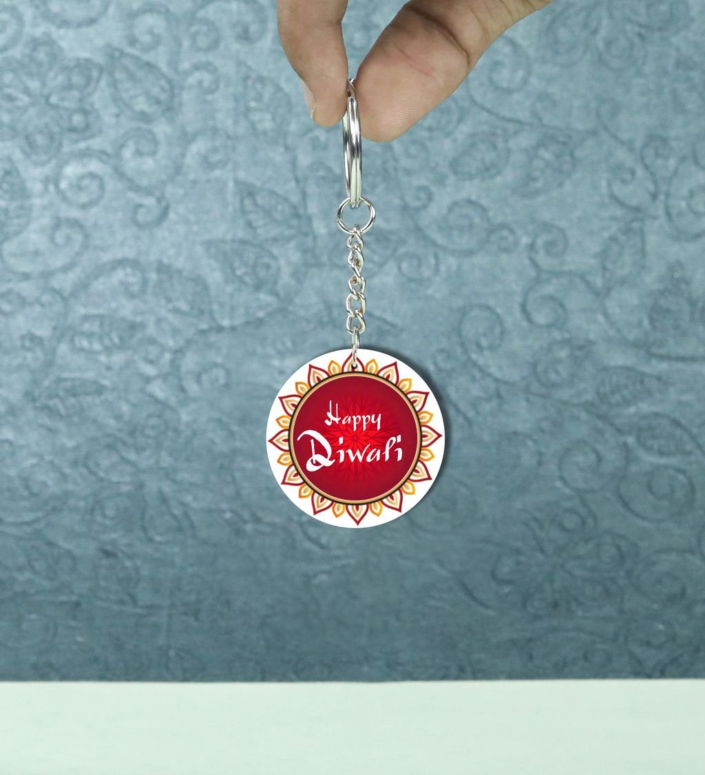 Bright Firecrackers Celebration Diwali Printed Round Keychain Pack of 2
