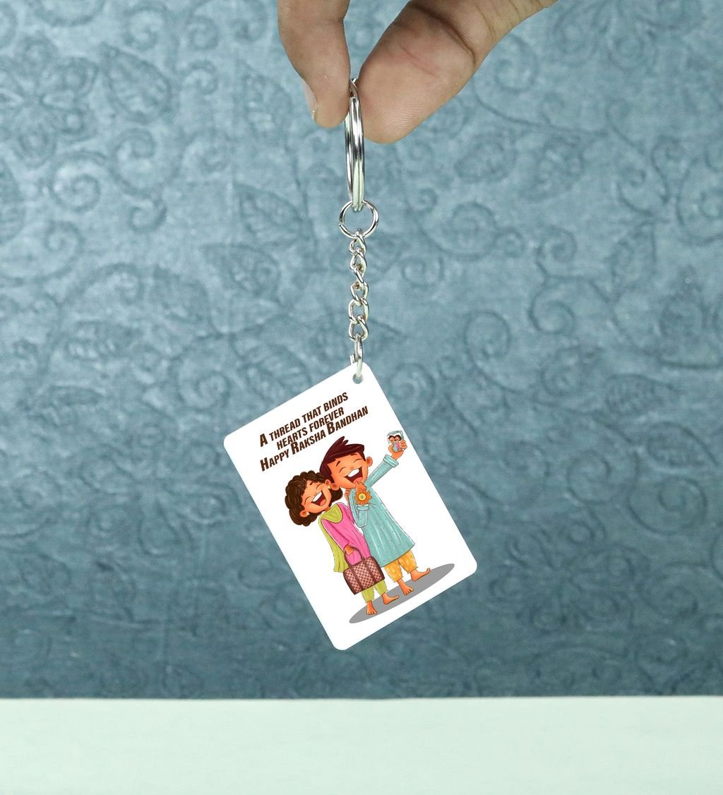 Celebrate the pure bond of Raksha Bandhan with our Bandhan of Blessings printed keychain. Designed to capture the love, care, and protection shared between siblings, this keychain makes a meaningful keepsake and a thoughtful gift. Lightweight, durable, and stylish, it