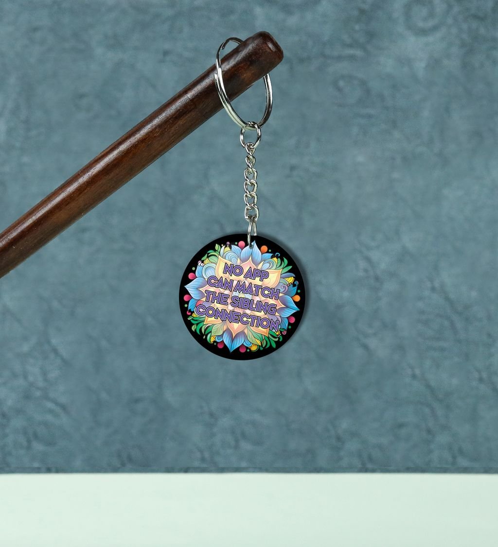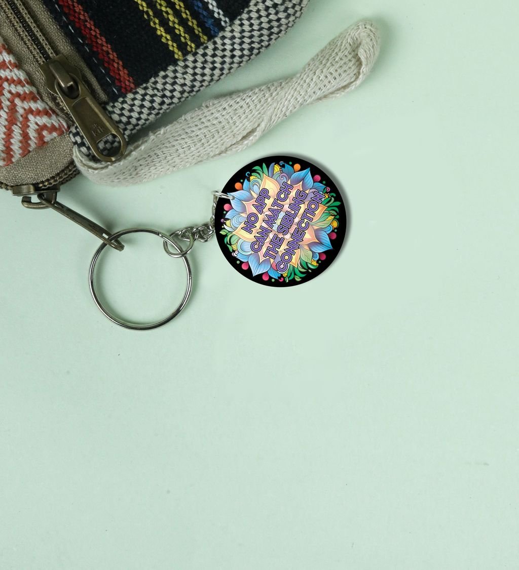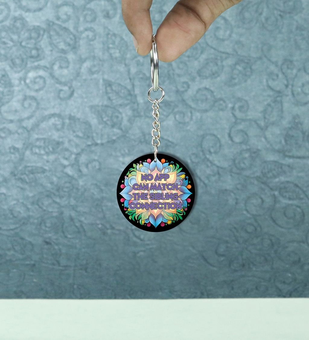 Colorful Art With Unmatched Sibling Connection Quote Printed Round Keychain Pack of 2