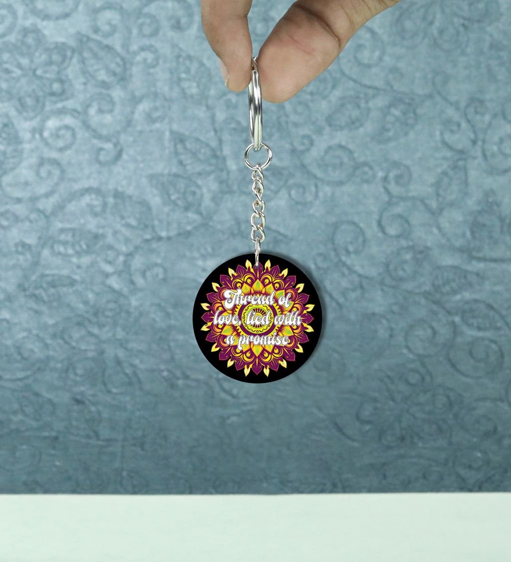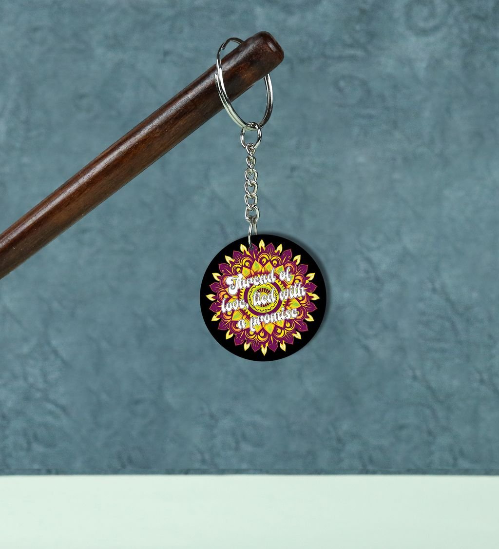 Colorful Mandala with Thread of Love Text Printed Round Keychain Pack of 2
