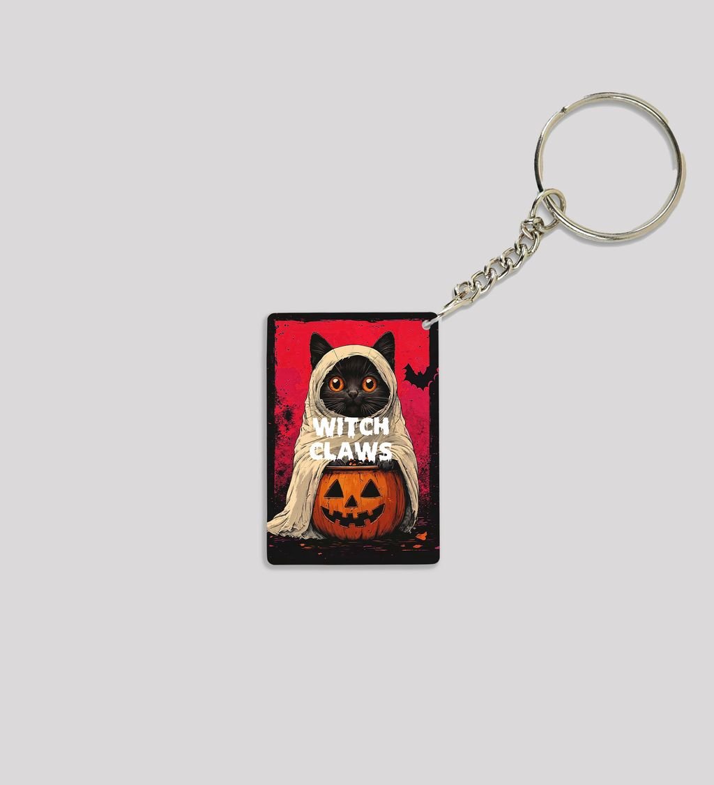 Add a dash of spooky charm to your everyday carry with this Halloween Cat rectangular keychain. Featuring a bewitching black cat design with eerie eyes and festive flair, it