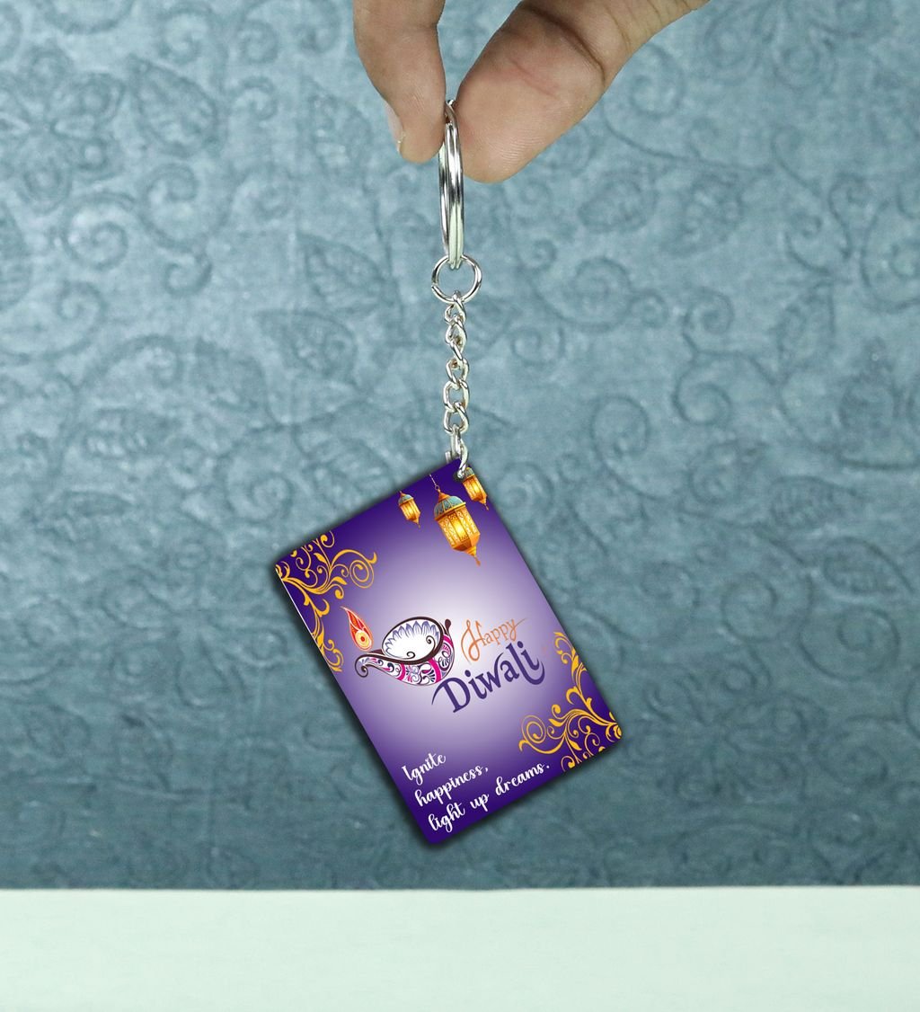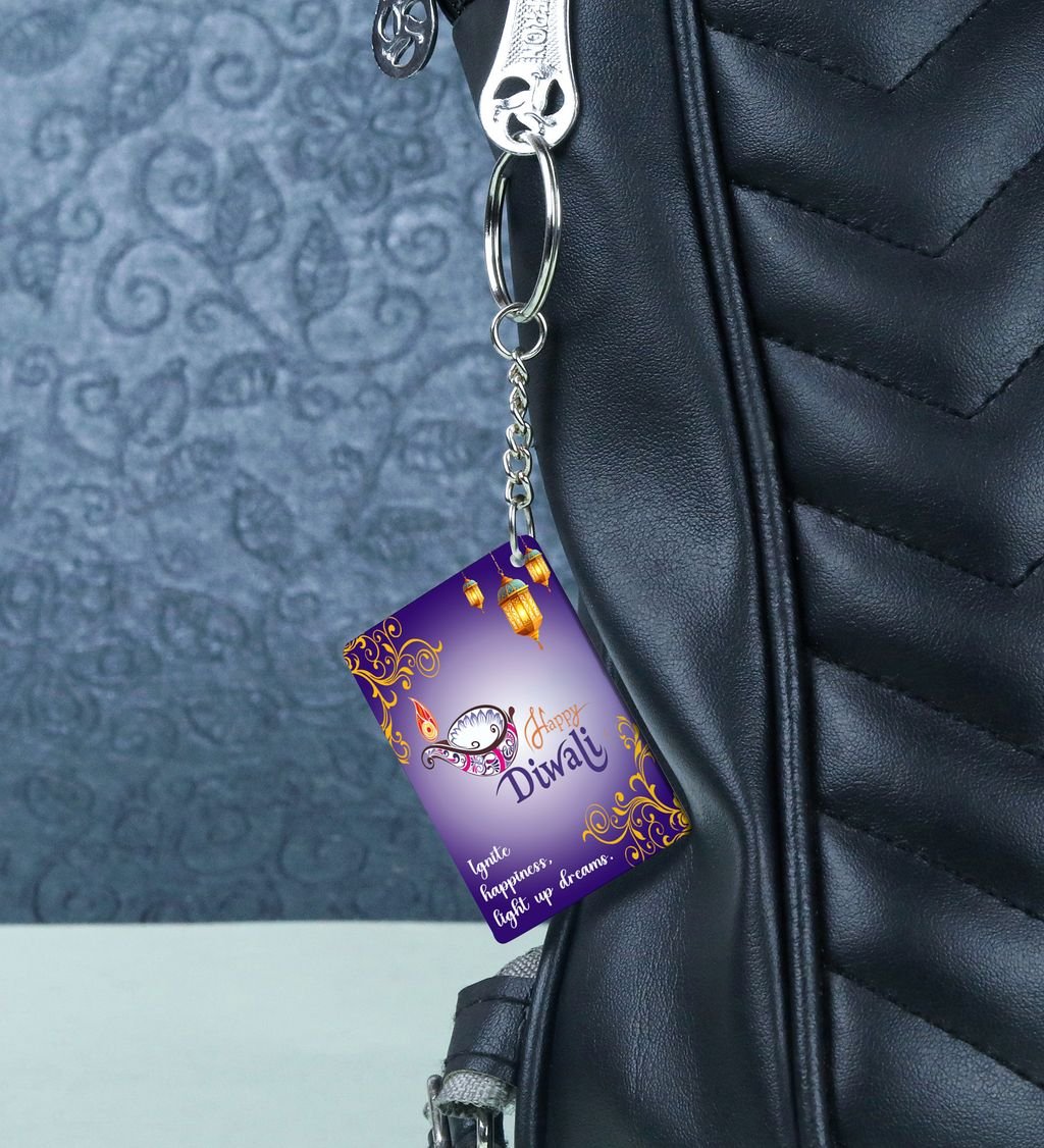 Celebrate the spirit of Deep Utsav with this vibrant rectangular keychain, inspired by the radiant glow of Diwali lamps. Featuring festive colors and intricate patterns, it adds a touch of joy and tradition to your everyday carry. Lightweight and durable, it's perfect for gifting or keeping the festive vibes close all year round. Carry a piece of the festival of lights wherever you go.