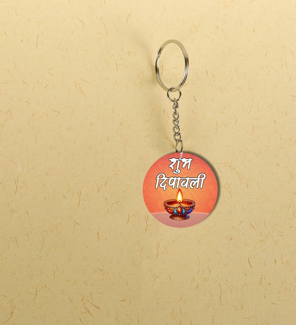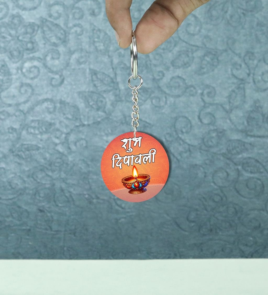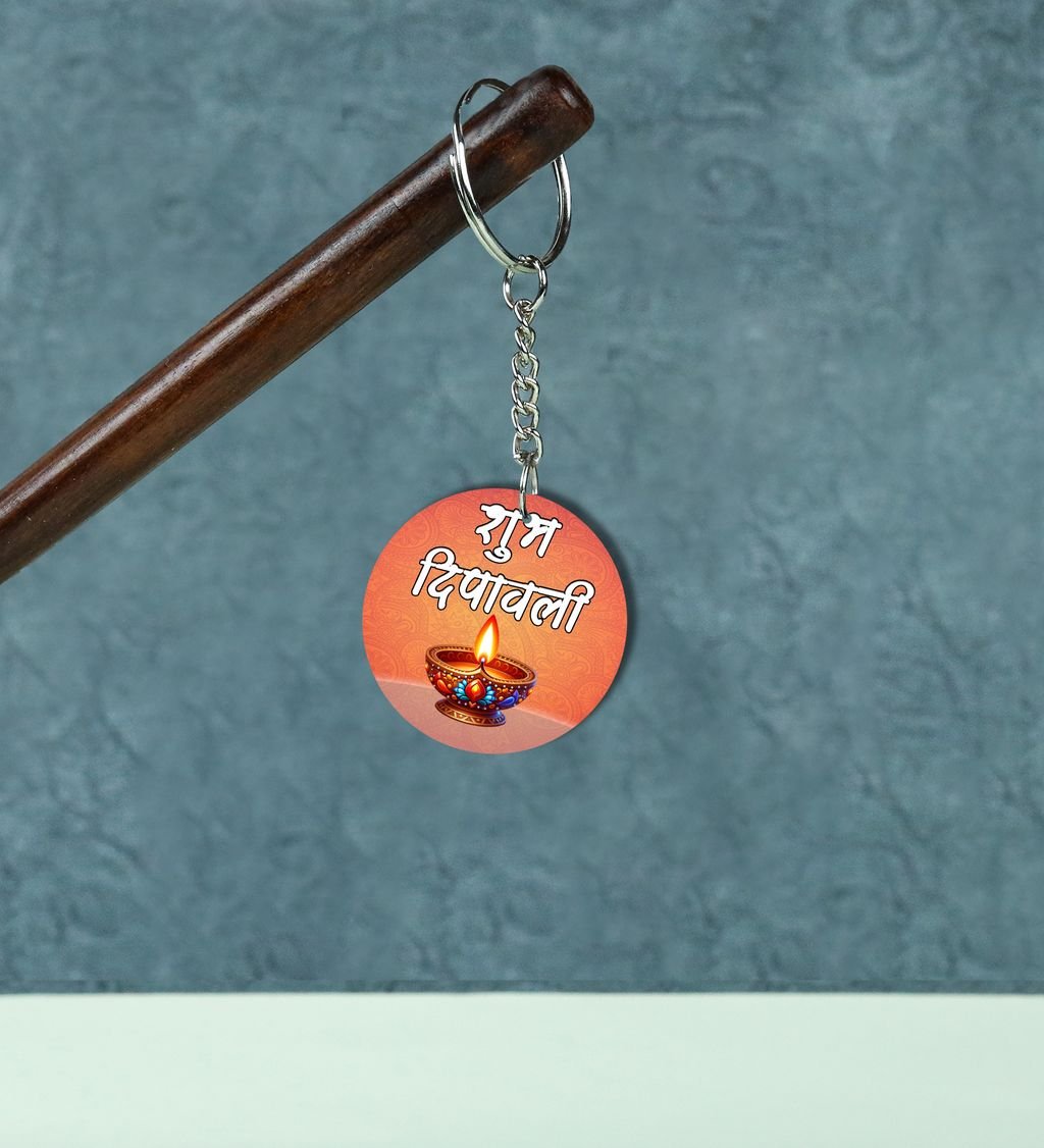 Festival of Lights Glow Diwali Printed Round Keychain Pack of 2