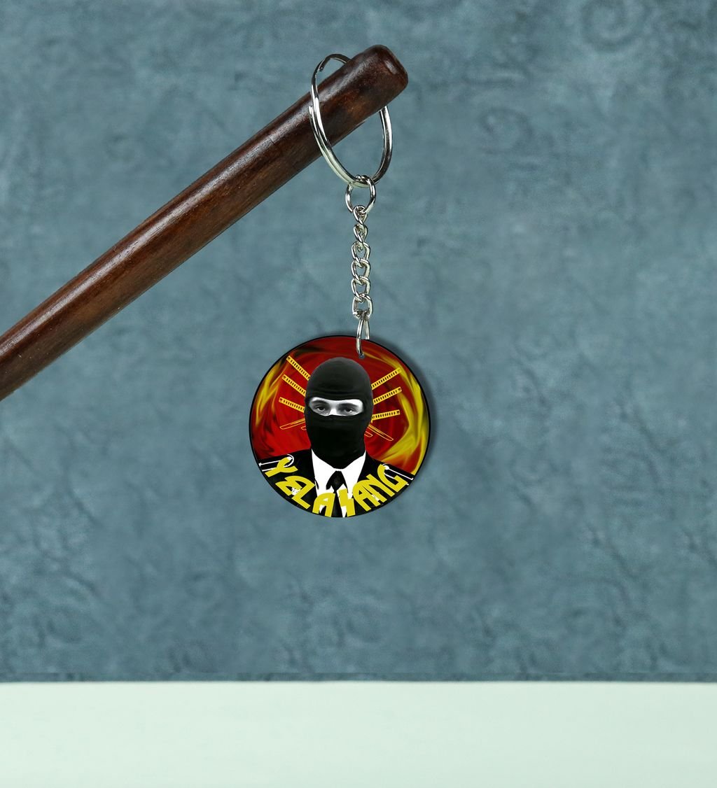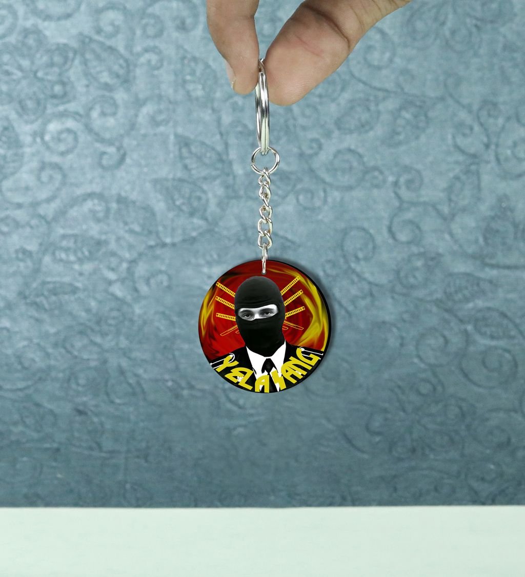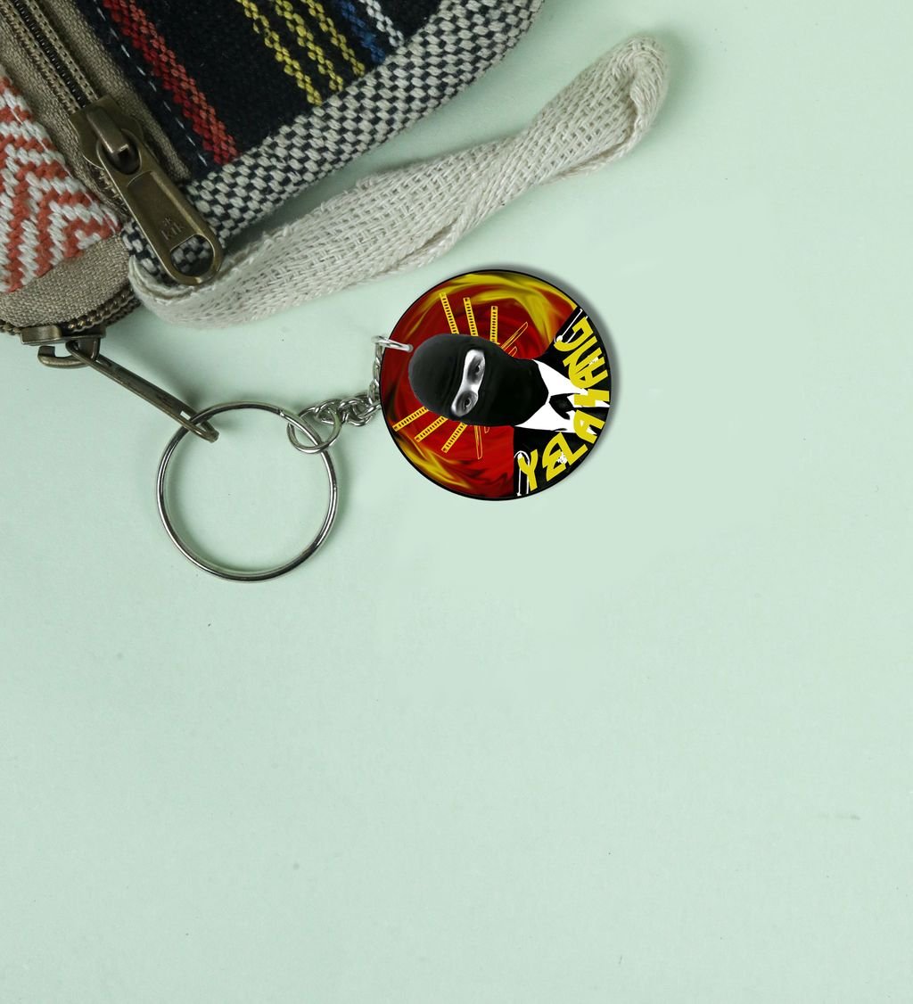 Mystery Fighter With Sword Aura Printed Round Keychain Pack of 2
