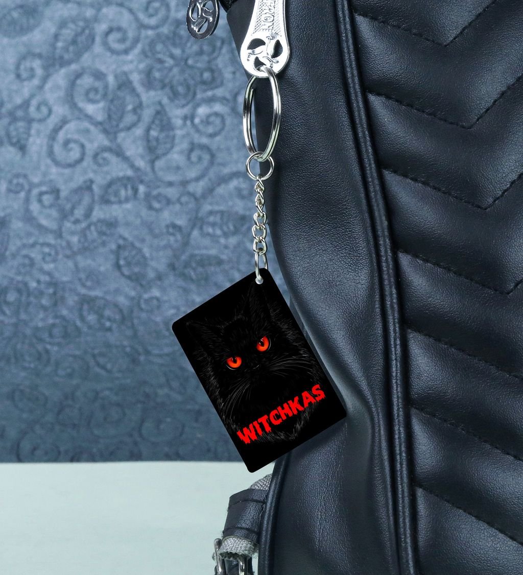 Stylish WITCHKAS Black Cat Collectible Printed Keychain Pack of 2