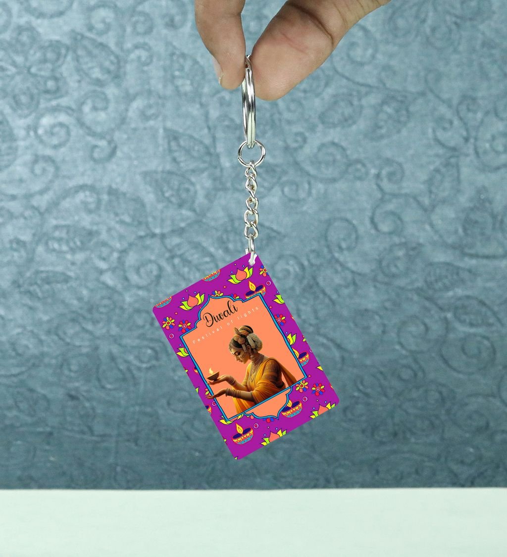 Light up your everyday essentials with this Diwali Decorative Rectangle Keychain! Featuring vibrant festive artwork with traditional lamps and ornate patterns, it's the perfect blend of culture and style. Whether you're gifting or accessorizing, this keychain adds a spark of celebration to your keys or bags. A small yet meaningful way to carry the spirit of Diwali with you!