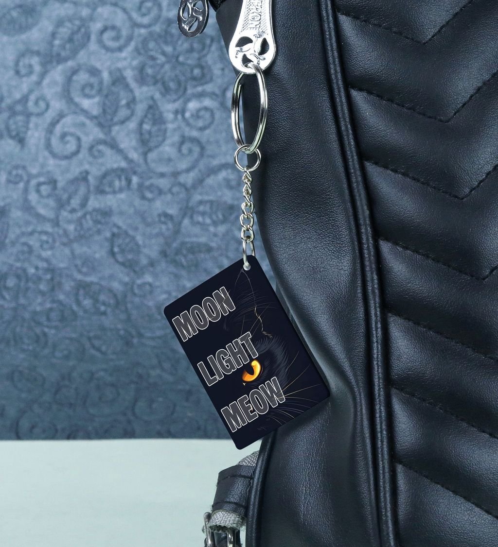 Add a dash of spooky charm to your everyday carry with this Halloween Cat rectangular keychain. Featuring a bewitching black cat design with eerie eyes and festive flair, it