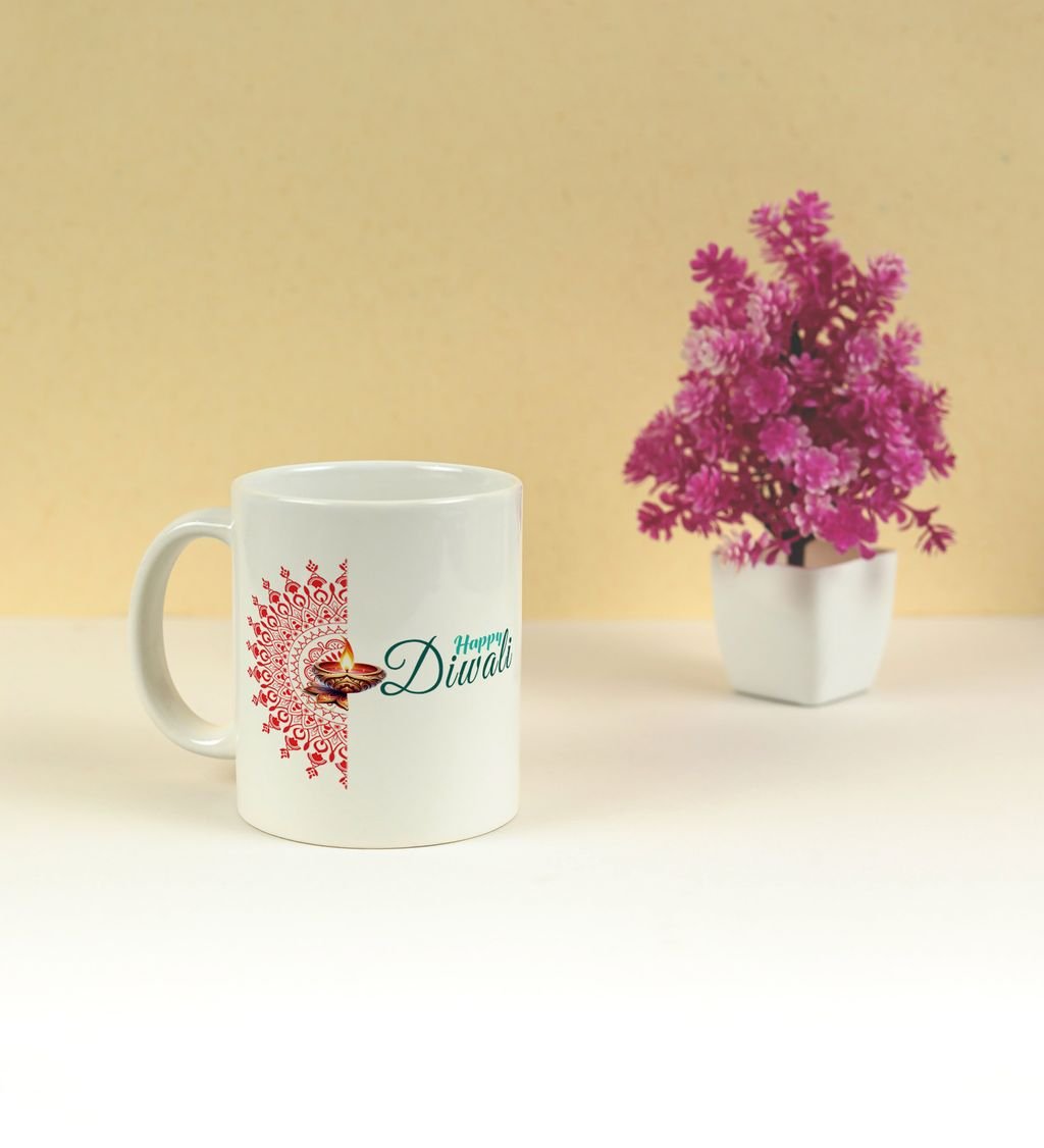 Celebrate the festival of lights with every sip! This beautifully designed Happy Diwali coffee mug adds a festive glow to your mornings and cozy evenings. Featuring vibrant diyas and elegant patterns, it's perfect for gifting or enjoying your favorite brew during the celebrations. Make your Diwali sparkle
