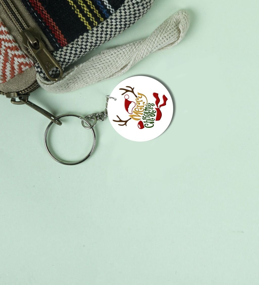 Cute Christmas Reindeer with Festive Message Printed Round Keychain Pack of 2
