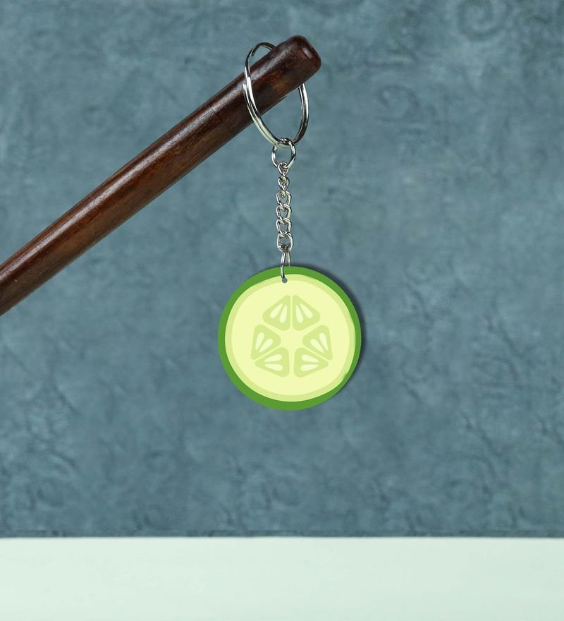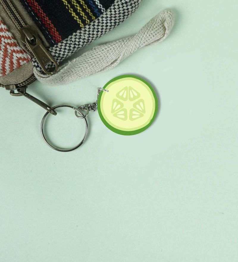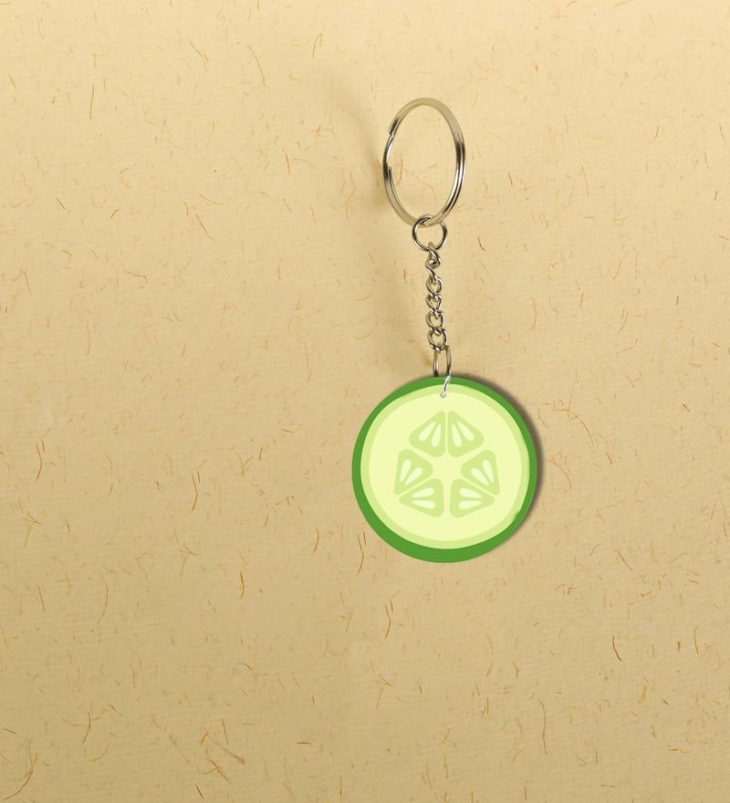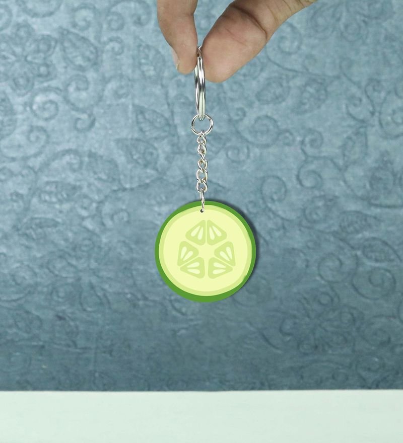 Cucumber Slice Art Printed Round Keychain Pack of 2