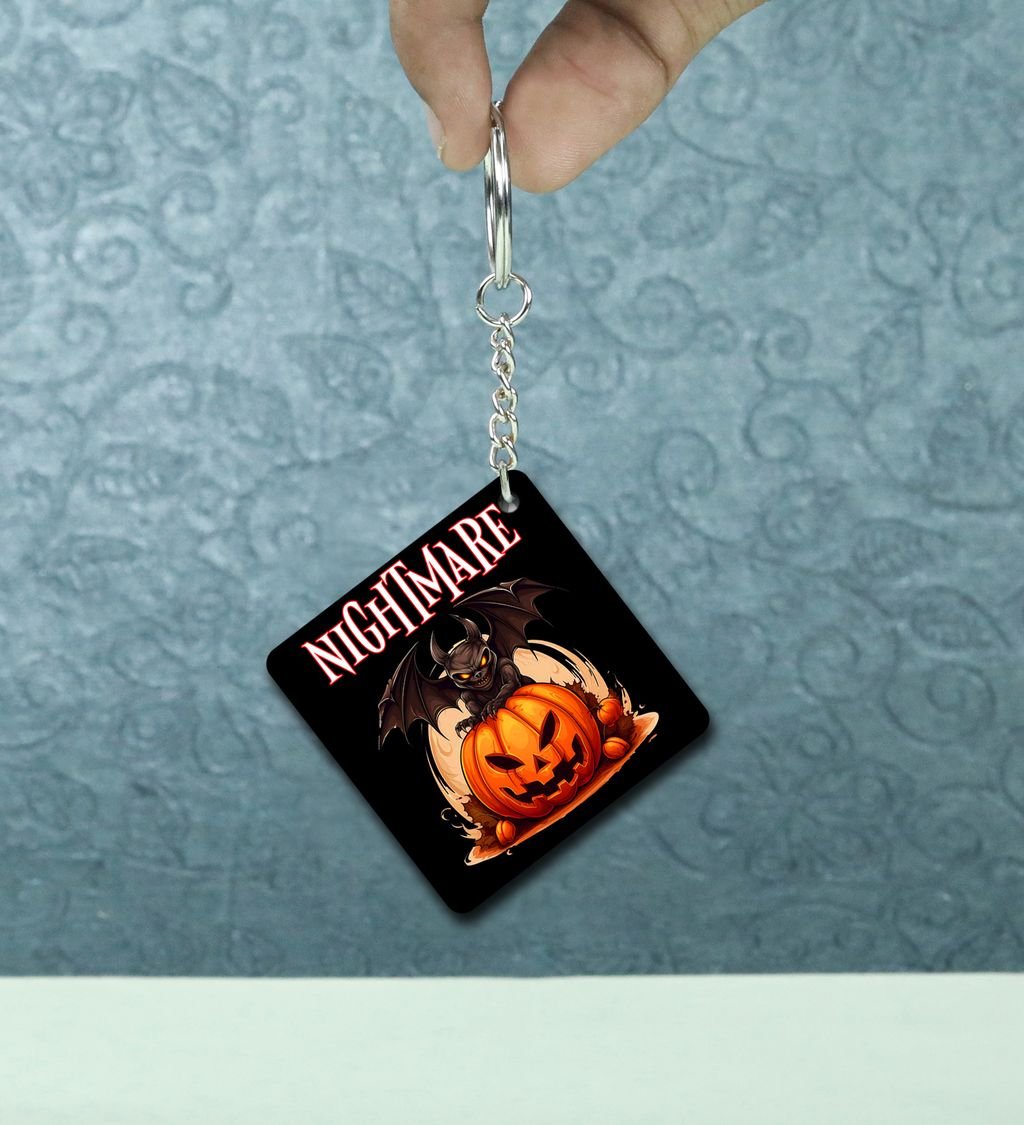 Add a twist of spooky charm to your everyday carry with this Hollo-Wello themed square keychain! Featuring quirky Halloween-inspired art and bold seasonal colors, it