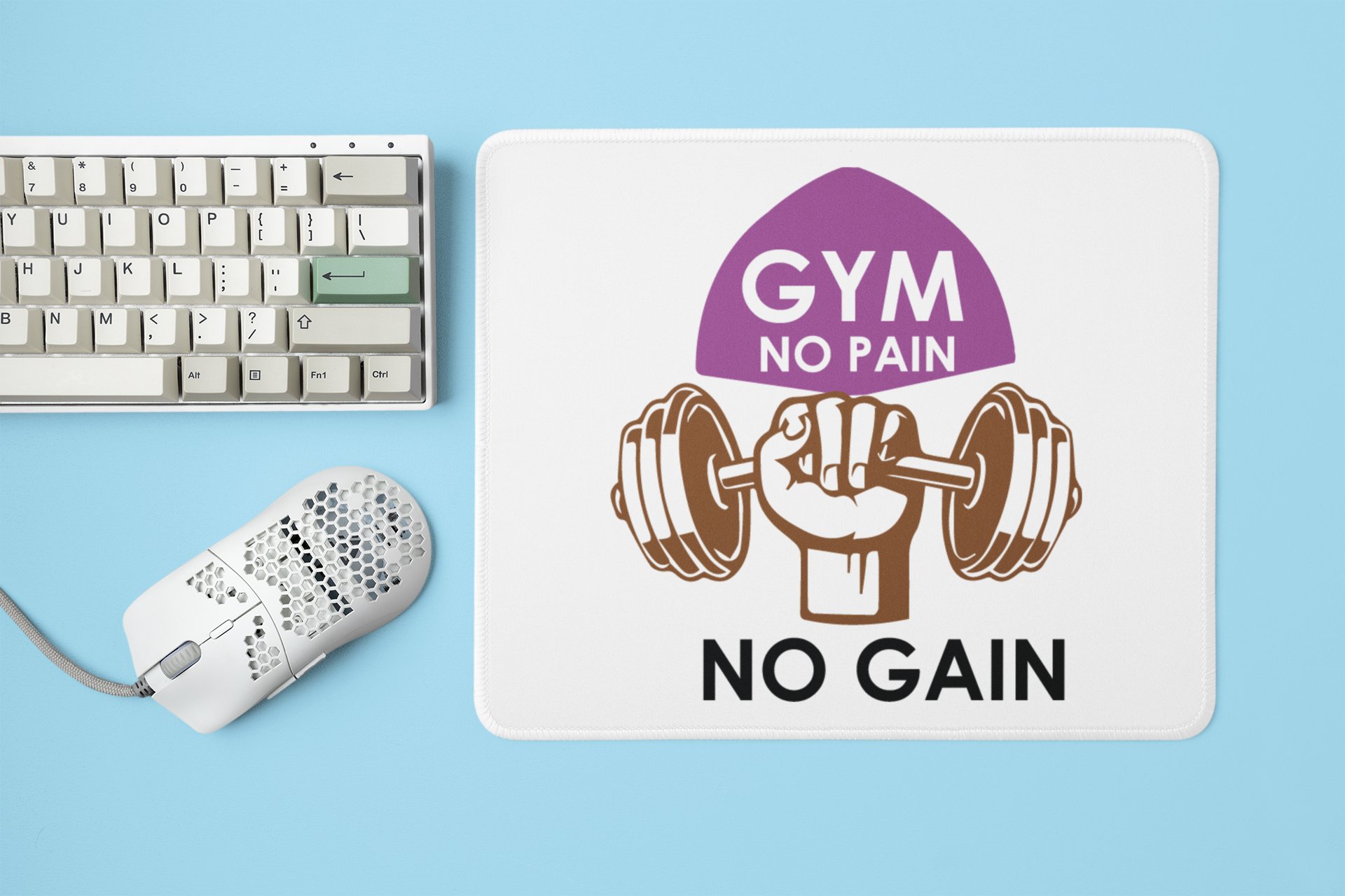 Gym, No Pain, No Gain, (BG Brown, Violet and Black) - Printed Mousepads For Gym Lovers