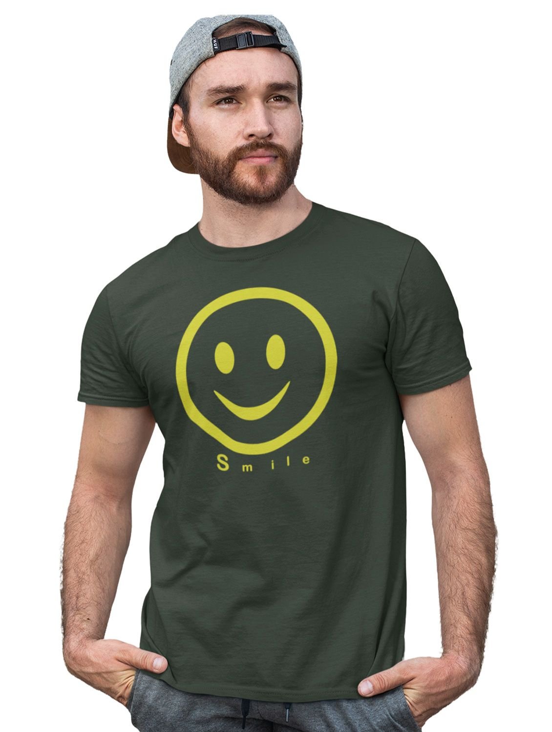 Simple Smile -Yellowish Outline Printed T-shirt (Green) - Clothes for Emoji Lovers - Suitable for Fun Events - Foremost Gifting Material for Your Friends and Close Ones