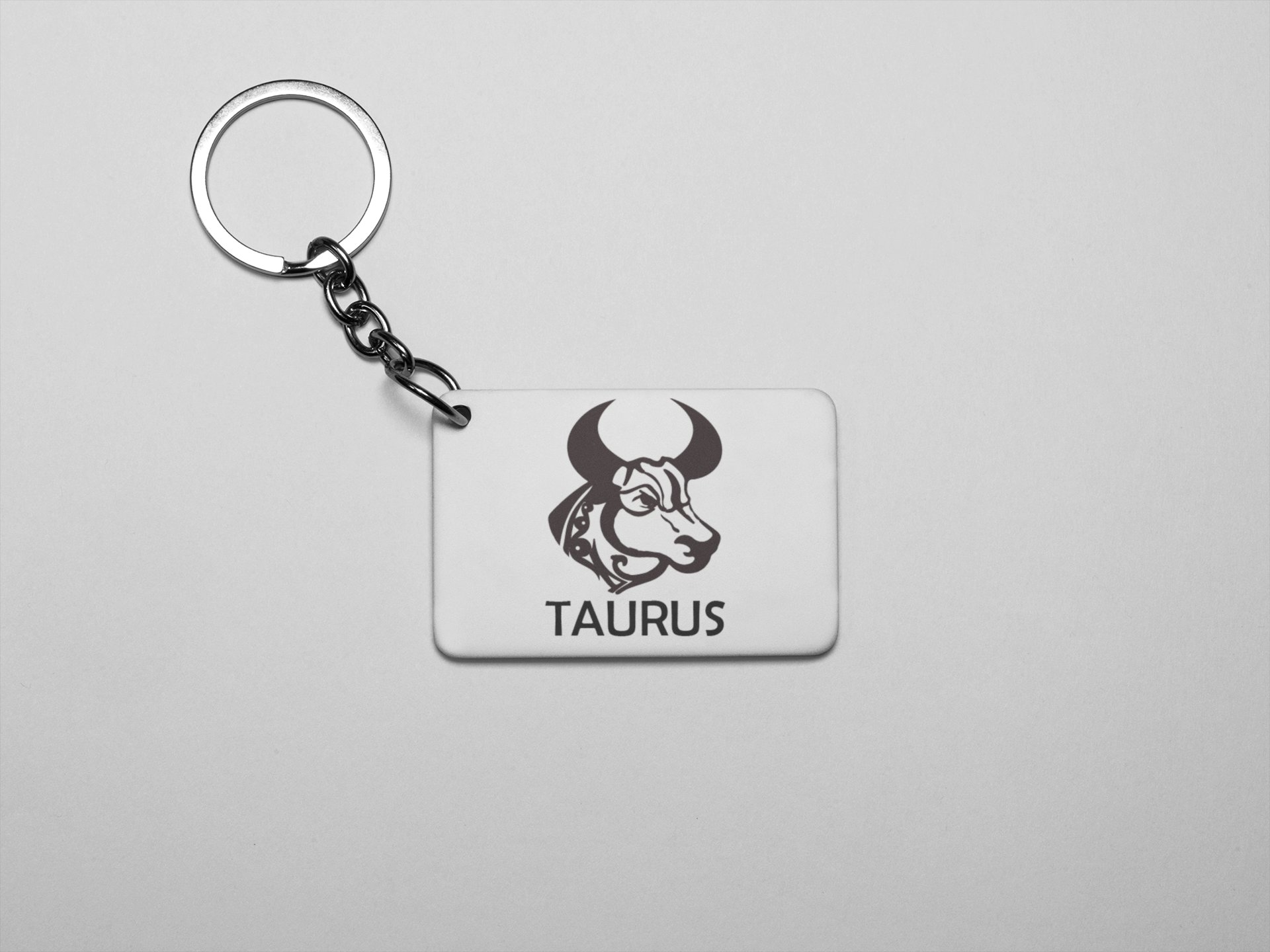 Taurus symbol design (BG Black) - Zodiac Sign Printed Keychains For Astrology Lovers(Pack of 2)